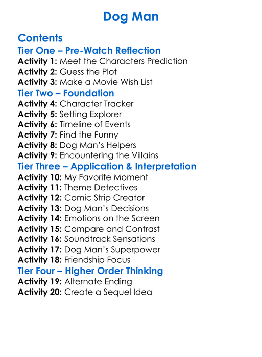 Dog Man Worksheet Activity Booklet