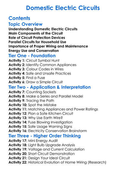 Domestic Electric Circuits Worksheet Activity Booklet