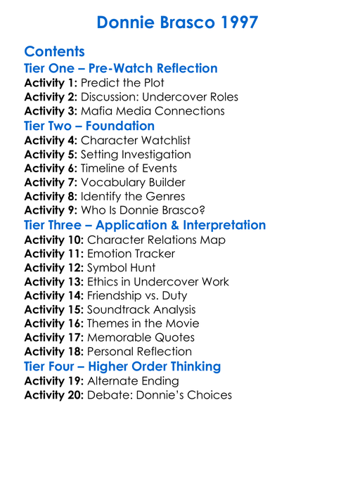 Donnie Brasco 1997 Worksheet Activity Booklet