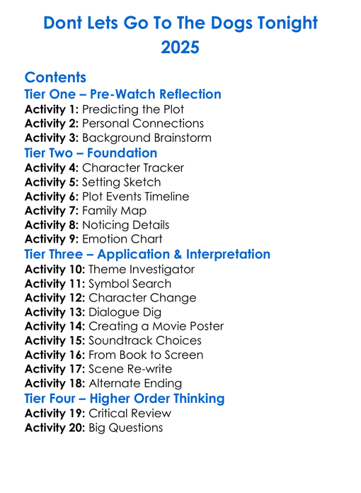 Dont Lets Go To The Dogs Tonight 2025 Worksheet Activity Booklet