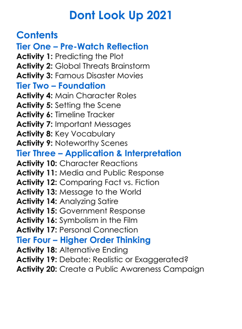 Dont Look Up 2021 Worksheet Activity Booklet