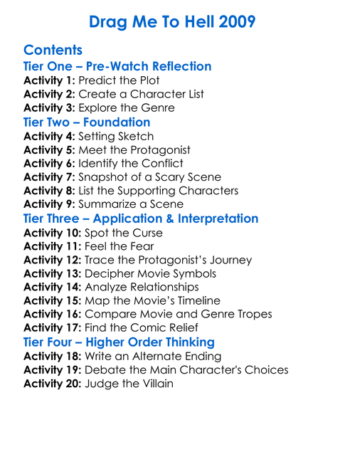 Drag Me To Hell 2009 Worksheet Activity Booklet