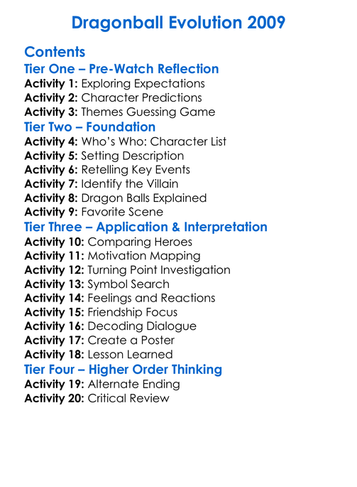 Dragonball Evolution 2009 Worksheet Activity Booklet