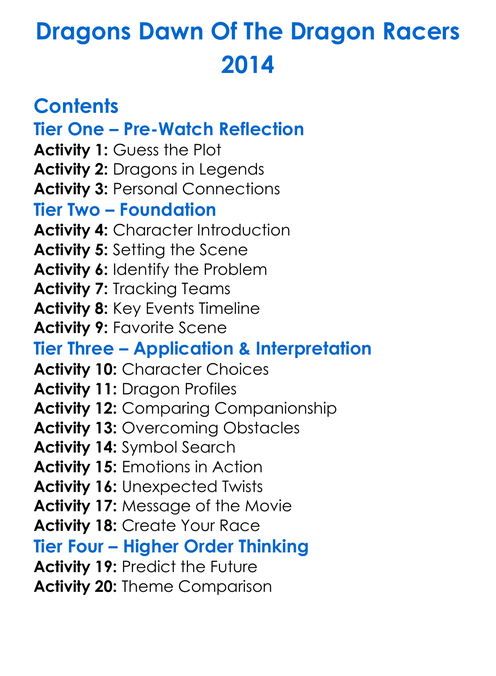 Dragons Dawn Of The Dragon Racers 2014 Worksheet Activity Booklet