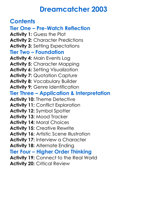 Dreamcatcher 2003 Worksheet Activity Booklet