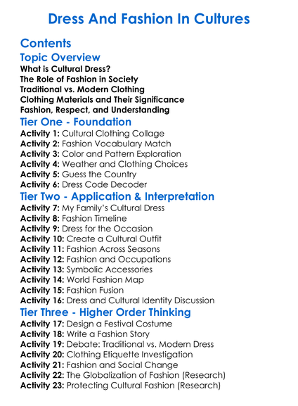 Dress And Fashion In Cultures Worksheet Activity Booklet