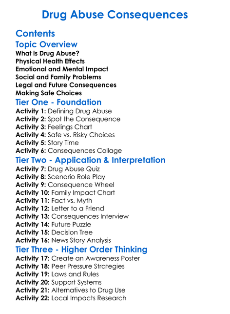 Drug Abuse Consequences Worksheet Activity Booklet