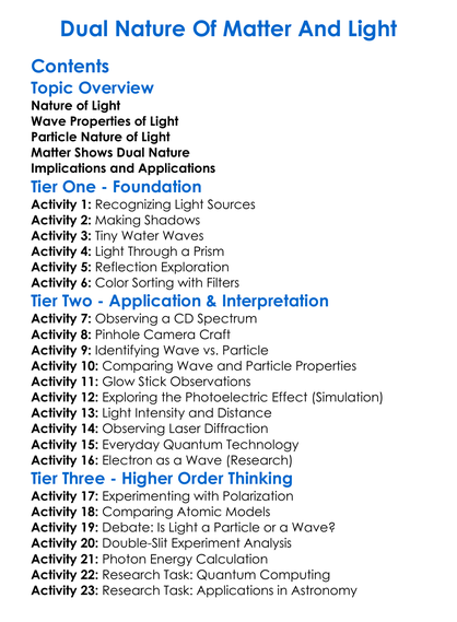 Dual Nature Of Matter And Light Worksheet Activity Booklet