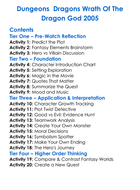 Dungeons Dragons Wrath Of The Dragon God 2005 Worksheet Activity Booklet