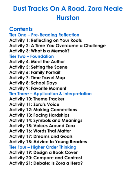 Dust Tracks On A Road Zora Neale Hurston Worksheet Activity Booklet