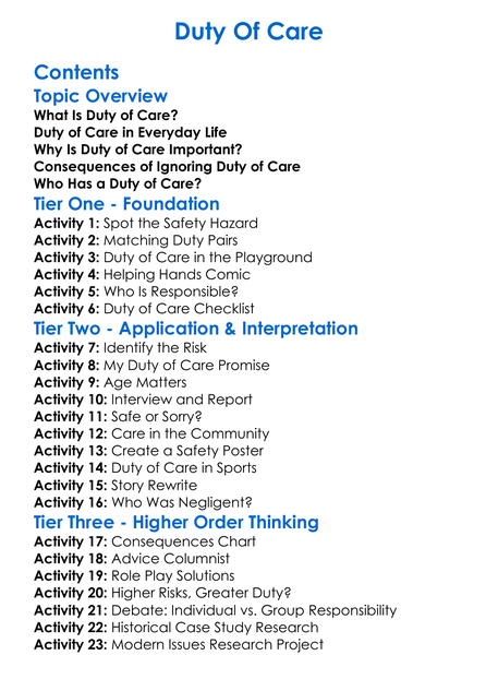 Duty Of Care Worksheet Activity Booklet
