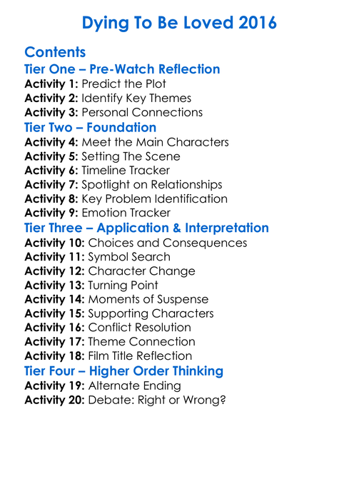 Dying To Be Loved 2016 Worksheet Activity Booklet