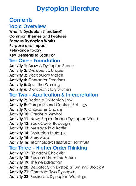 Dystopian Literature Worksheet Activity Booklet