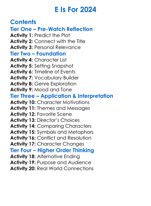 E Is For 2024 Worksheet Activity Booklet