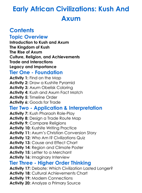 Early African Civilizations Kush And Axum Worksheet Activity Booklet