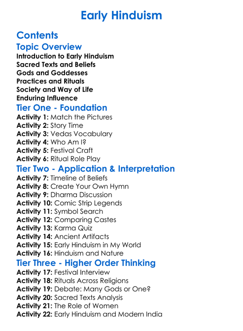 Early Hinduism Worksheet Activity Booklet