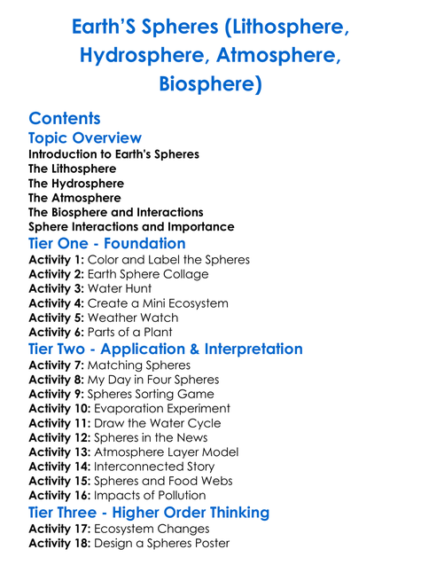 Earths Spheres Lithosphere Hydrosphere Atmosphere Biosphere Worksheet Activity Booklet