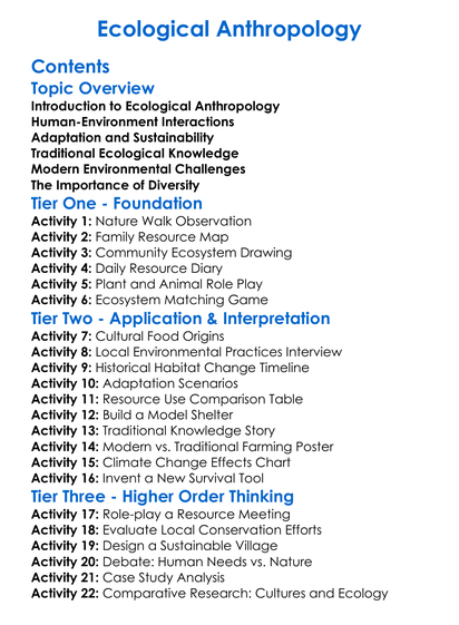 Ecological Anthropology Worksheet Activity Booklet