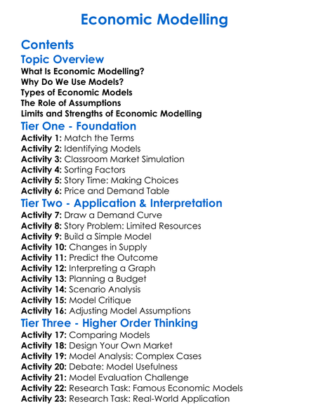 Economic Modelling Worksheet Activity Booklet