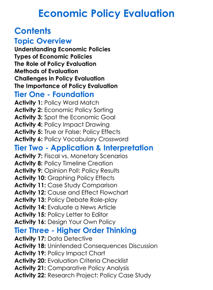 Economic Policy Evaluation Worksheet Activity Booklet