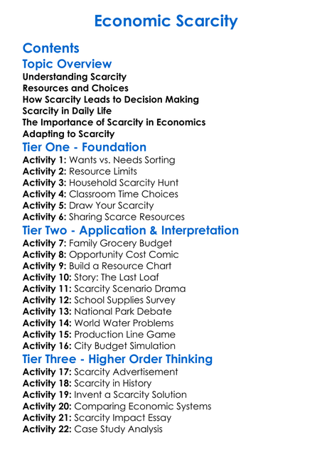Economic Scarcity Worksheet Activity Booklet