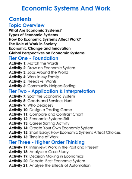Economic Systems And Work Worksheet Activity Booklet