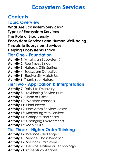 Ecosystem Services Worksheet Activity Booklet