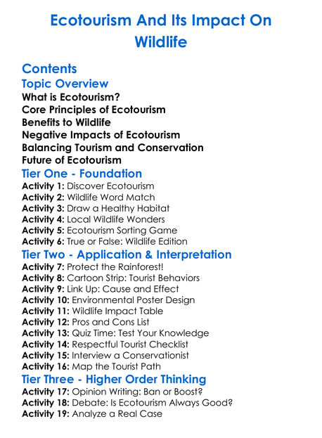 Ecotourism And Its Impact On Wildlife Worksheet Activity Booklet