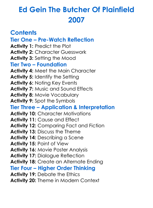 Ed Gein The Butcher Of Plainfield 2007 Worksheet Activity Booklet