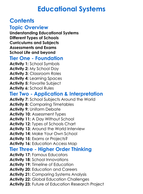 Educational Systems Worksheet Activity Booklet