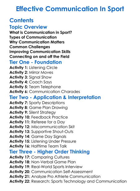 Effective Communication In Sport Worksheet Activity Booklet