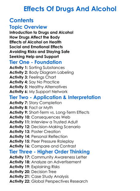 Effects Of Drugs And Alcohol Worksheet Activity Booklet