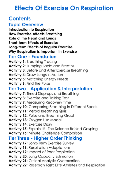 Effects Of Exercise On Respiration Worksheet Activity Booklet