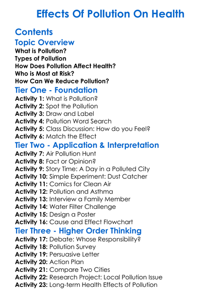 Effects Of Pollution On Health Worksheet Activity Booklet