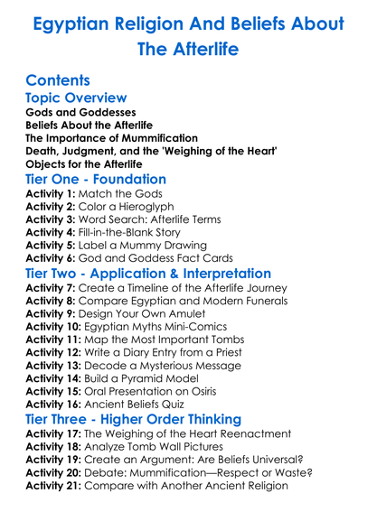 Egyptian Religion And Beliefs About The Afterlife Worksheet Activity Booklet