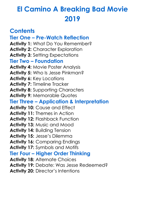 El Camino A Breaking Bad Movie 2019 Worksheet Activity Booklet