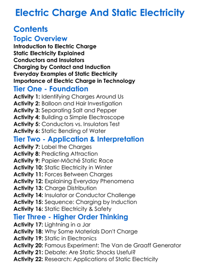 Electric Charge And Static Electricity Worksheet Activity Booklet