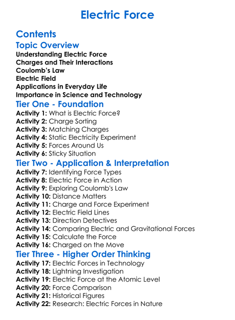 Electric Force Worksheet Activity Booklet