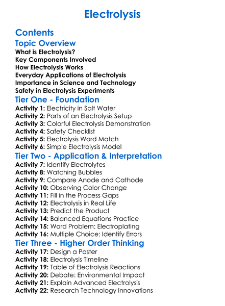 Electrolysis Worksheet Activity Booklet