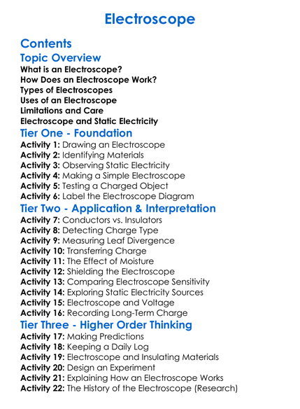 Electroscope Worksheet Activity Booklet
