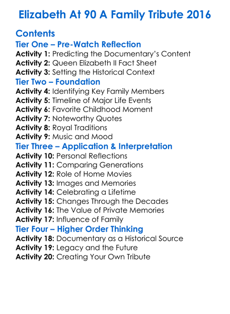 Elizabeth At 90 A Family Tribute 2016 Worksheet Activity Booklet
