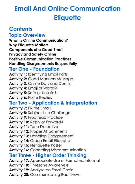 Email And Online Communication Etiquette Worksheet Activity Booklet