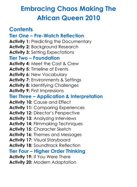 Embracing Chaos Making The African Queen 2010 Worksheet Activity Booklet