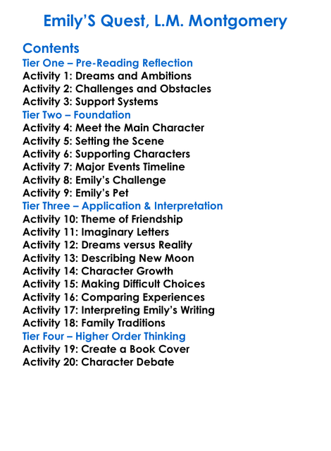 Emilys Quest Lm Montgomery Worksheet Activity Booklet