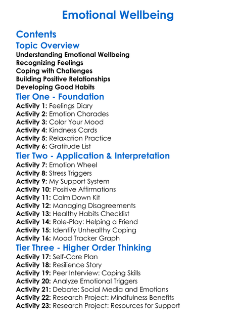 Emotional Wellbeing Worksheet Activity Booklet