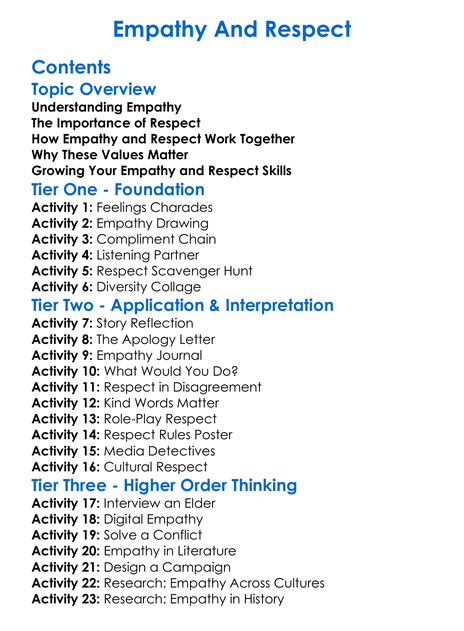 Empathy And Respect Worksheet Activity Booklet