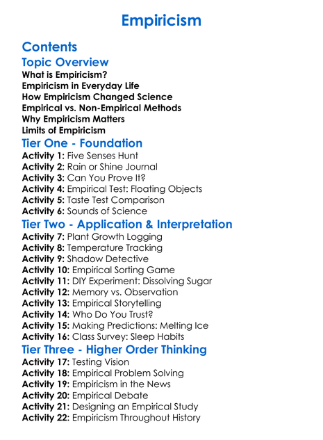 Empiricism Worksheet Activity Booklet