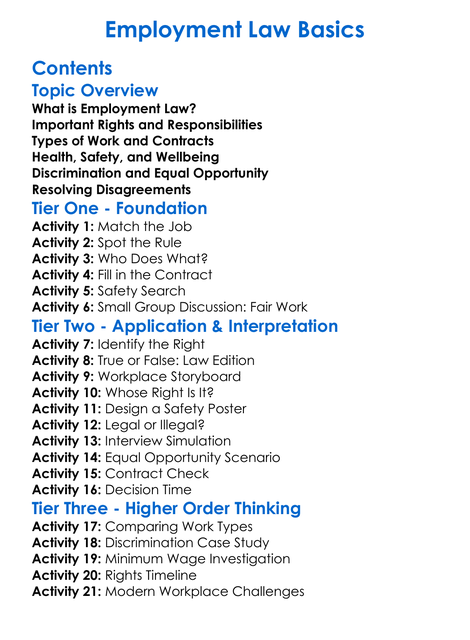 Employment Law Basics Worksheet Activity Booklet