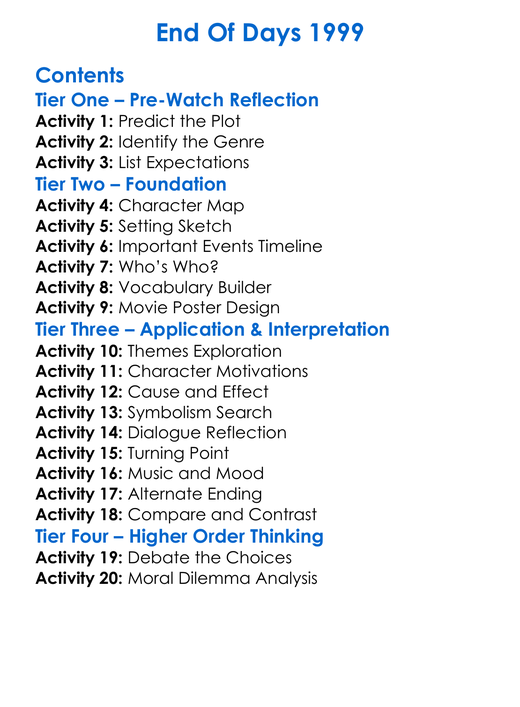 End Of Days 1999 Worksheet Activity Booklet