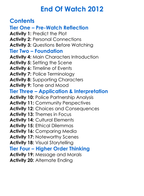 End Of Watch 2012 Worksheet Activity Booklet